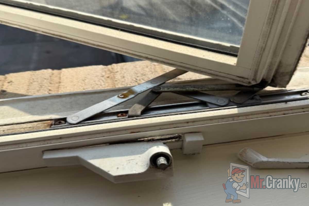 Broken window hinge & crank